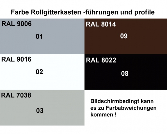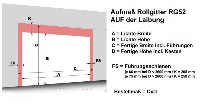 Rollgitter Kastengröße | max. Höhe incl. Kasten | Breite Führungsschiene |